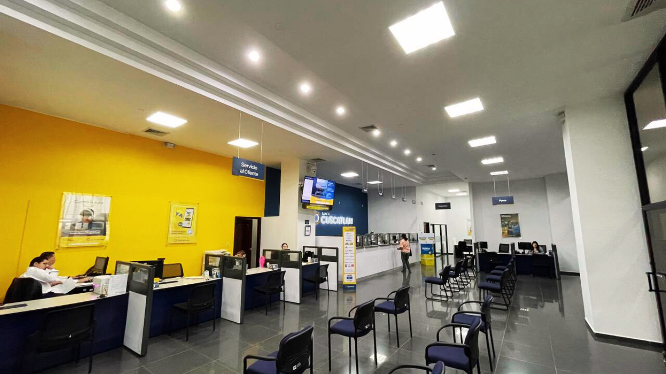 • Distribución: lobby/atención al cliente, módulos de caja/ATM, salas de espera, oficinas y áreas técnicas.